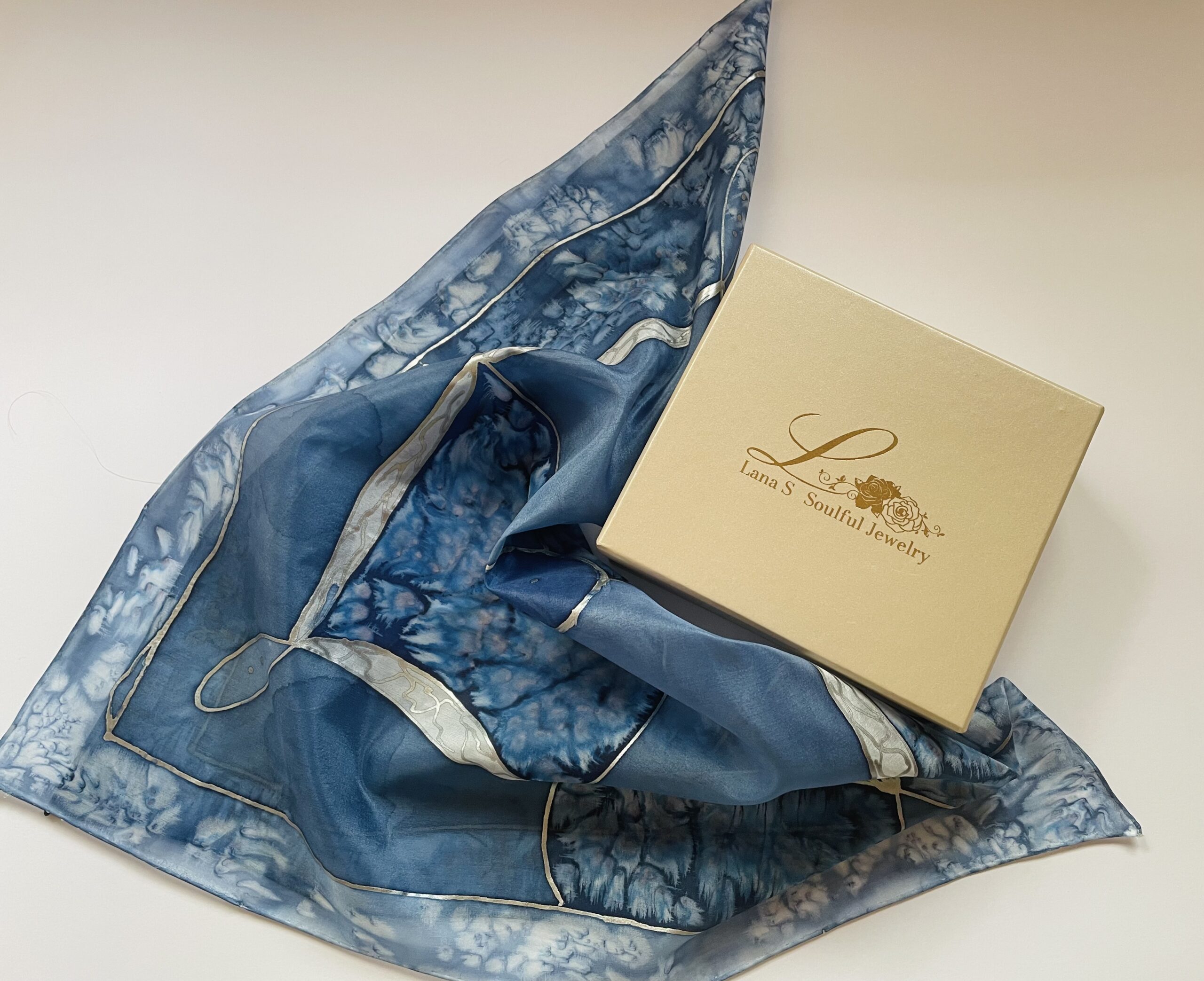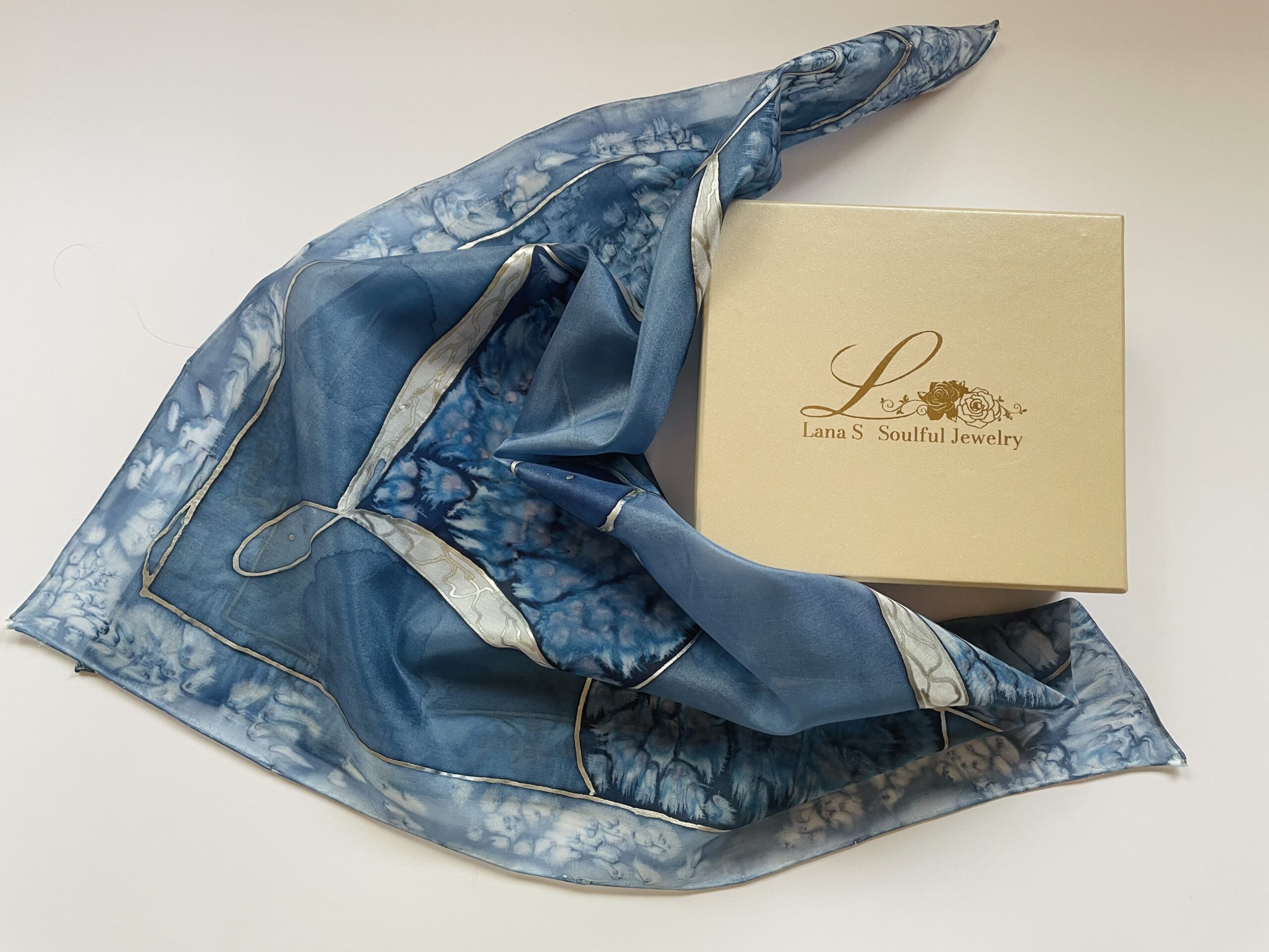 - Ručno oslikana svilena marama od 100% prirodne svile, elegantan poklon u luksuznom pakovanju. Moguća personalizacija na upit. Unique silk scarf.